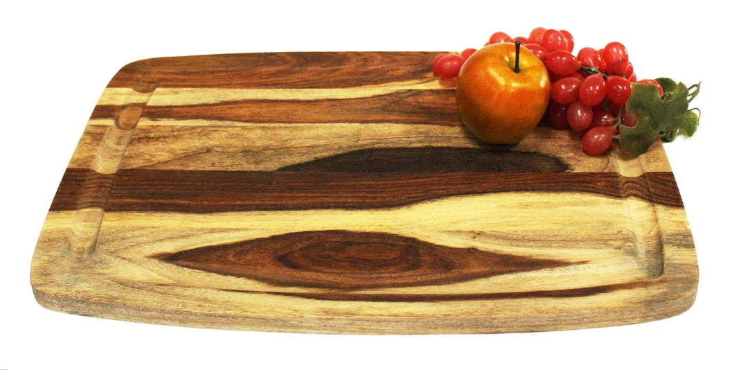 Unique and beautiful natural wood cutting board ideal for serving food and cutting up your favorite veggies. Features a generously sized juice groove on one surface