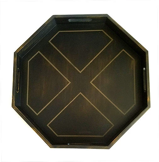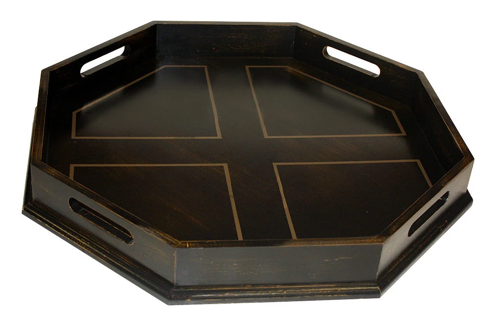 - Exquisitely handcrafted, octagon-shaped wooden serving tray ornamented with handles