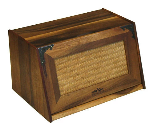- Antique styled bread box accented with metal fittings