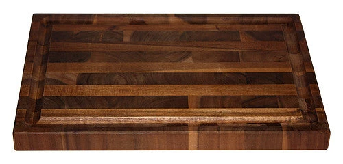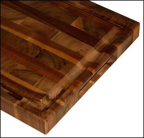 Handles are routed in the ends of this generously sized cutting board making it easy to grip and move around your kitchen. Features a generously sized juice groove on one surface. Both sides of the board are suitable for chopping and slicing, saving clean-up time. Your knife will require less sharpening because wooden cutting boards are less dulling than synthetic cutting boards. Our cutting boards are protected with a food-safe finish.