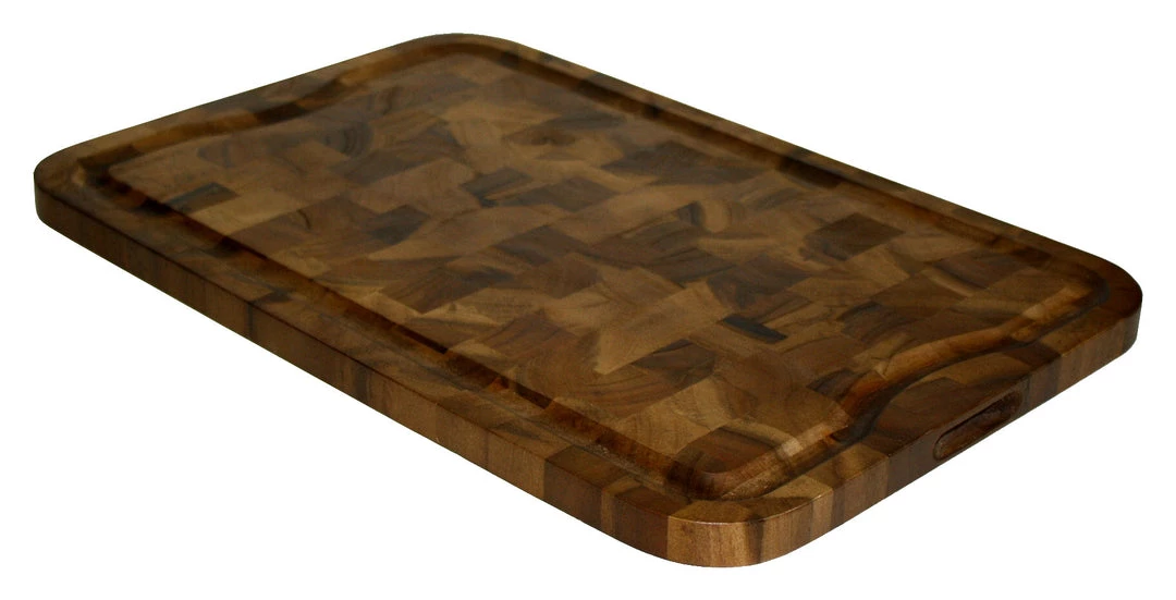 Handles are routed in the ends of this generously sized cutting board making it easy to grip and move around your kitchen. Features a generously sized juice groove on one surface. Both sides of the board are suitable for chopping and slicing, saving clean-up time. Your knife will require less sharpening because wooden cutting boards are less dulling than synthetic cutting boards. Our cutting boards are protected with a food-safe finish.
