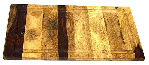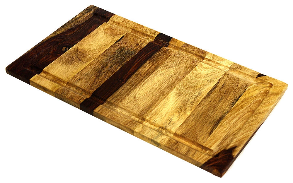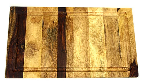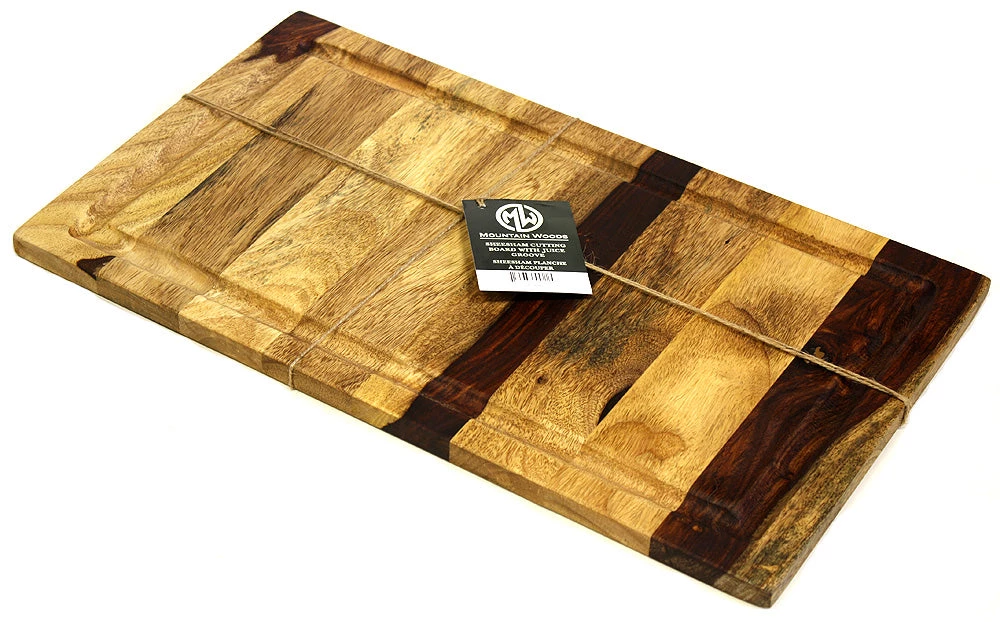 Made from beautiful edge-grain Sheesham wood; 19inch cutting, carving, and prep station board by Mountain Woods. Richest hues of the wood combined with the most sophisticated wood grains provide a unique piece that combines function and magnificent artisanship. Environmentally friendly, plantation-grown Sheesham wood is known for its versatility, function, beauty, and sustainability.