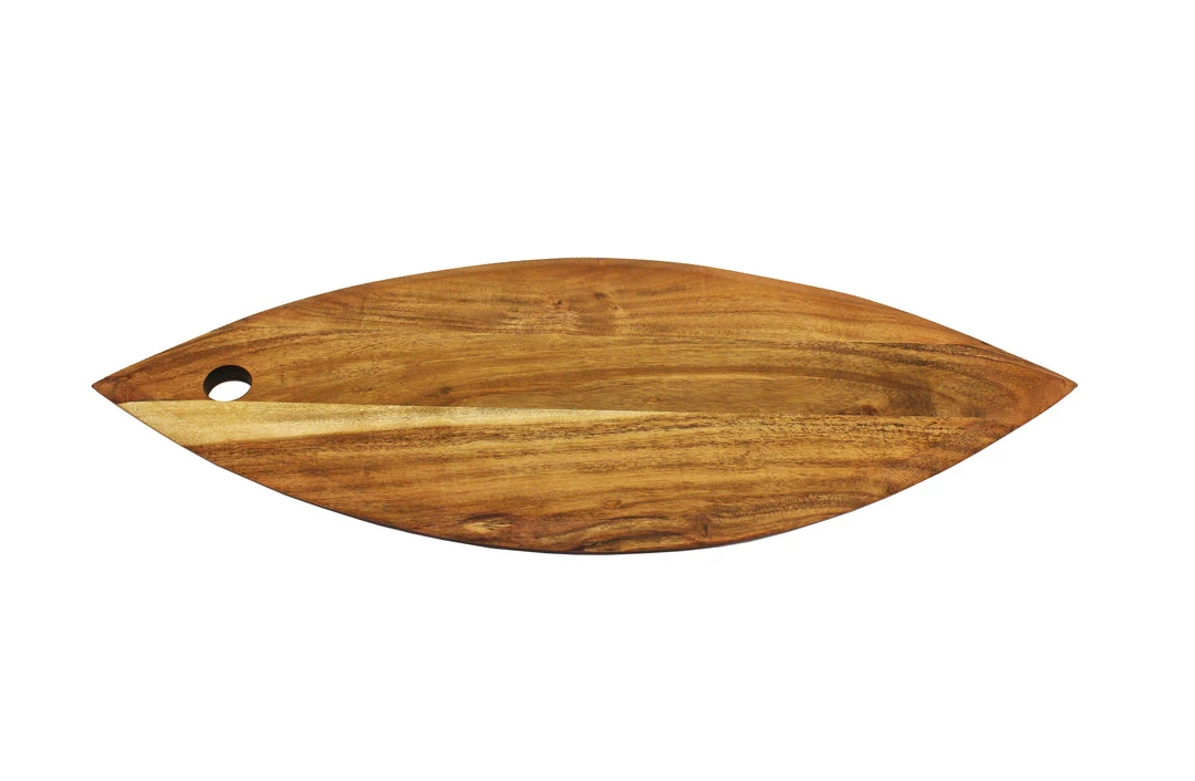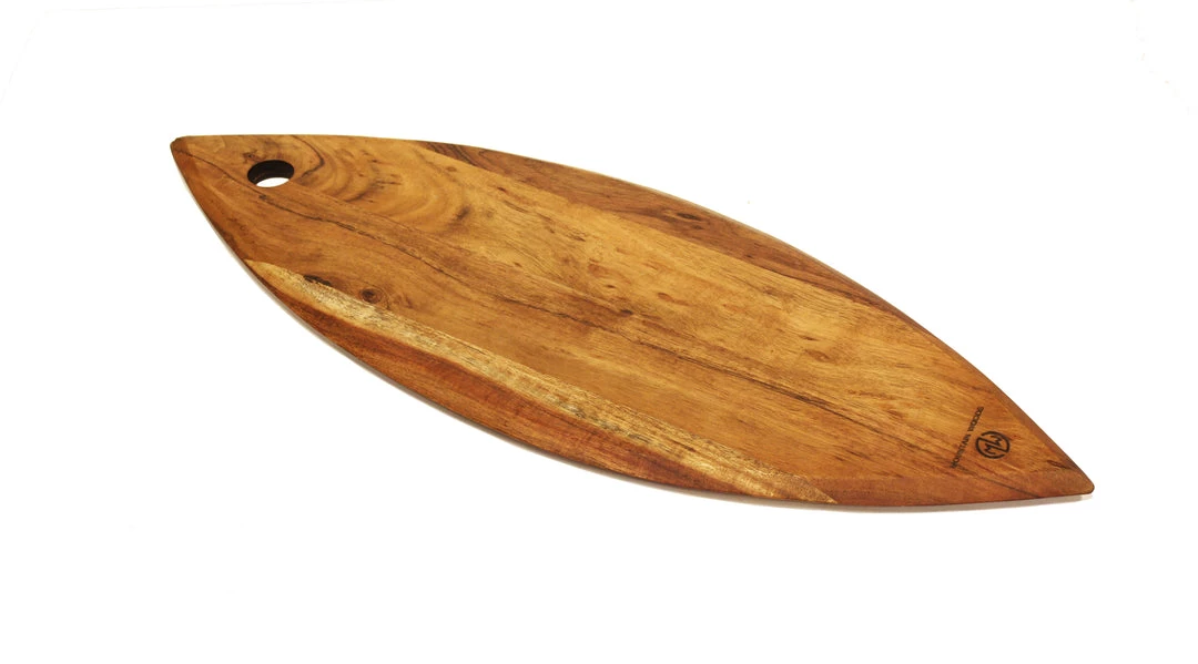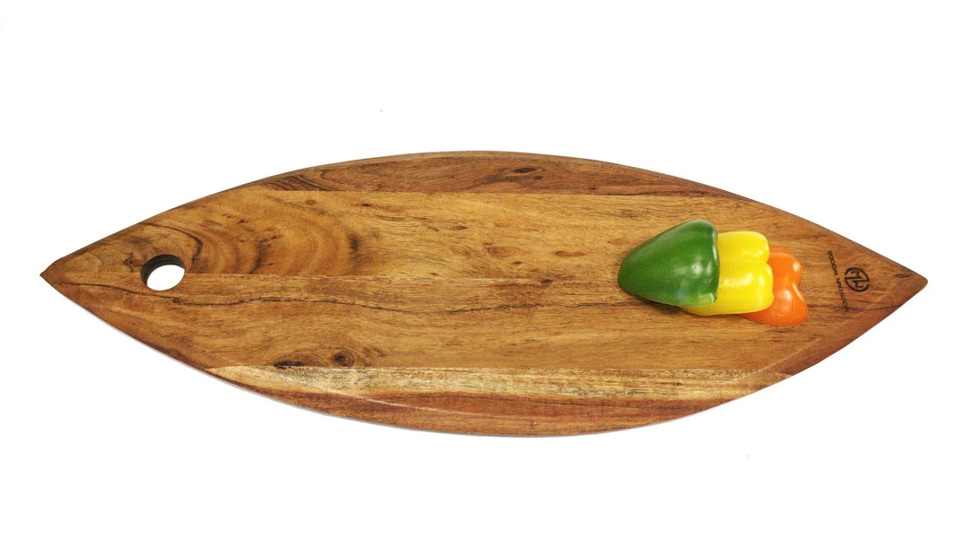 Made from beautiful edge Grain Acacia wood; 27-inch cutting, carving, and prep station board by Mountain Woods. Richest hues of the wood combined with the most sophisticated wood grains provide a unique piece that combines function and magnificent artisanship, plantation-grown acacia wood is known for its versatility, function, beauty, and sustainability.