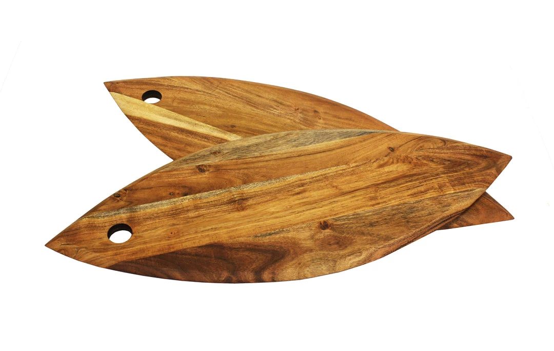 Both sides of the board are suitable for serving, chopping and slicing, saving clean-up time. Your knife will require less sharpening because wooden cutting boards are less dulling than synthetic cutting boards. Our cutting boards are protected with a food-safe vegetable oil finish.