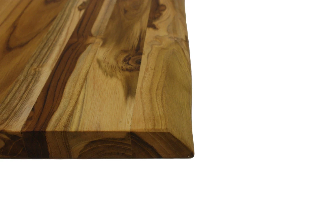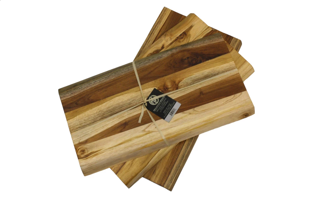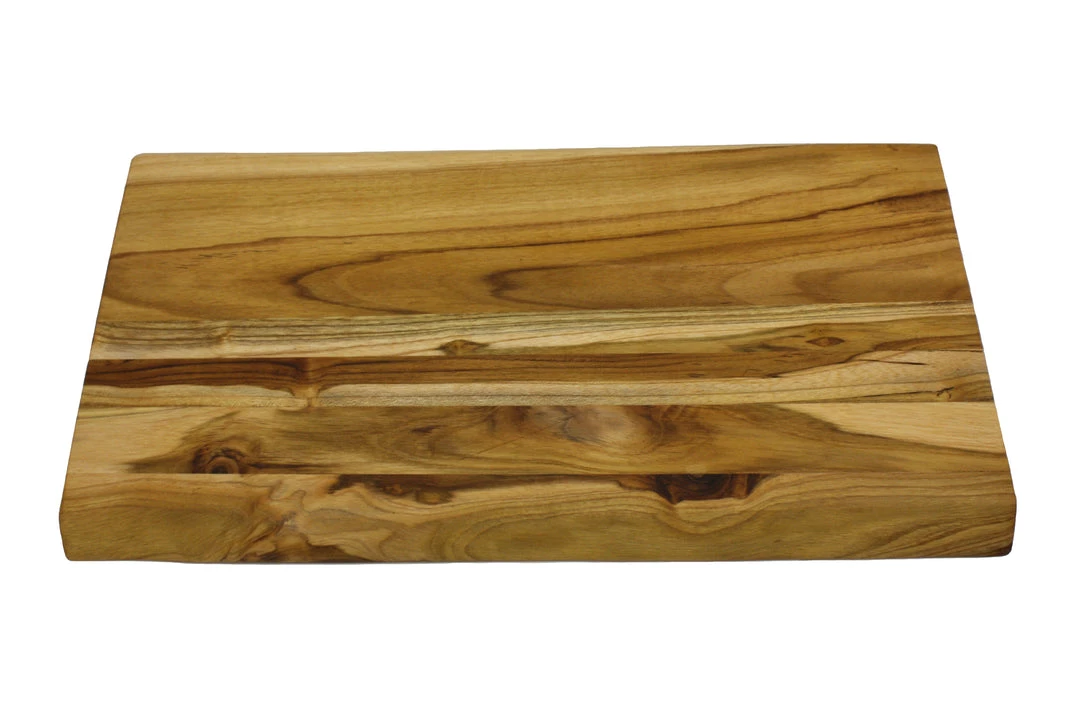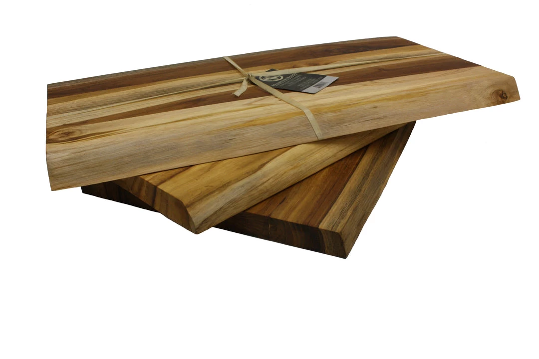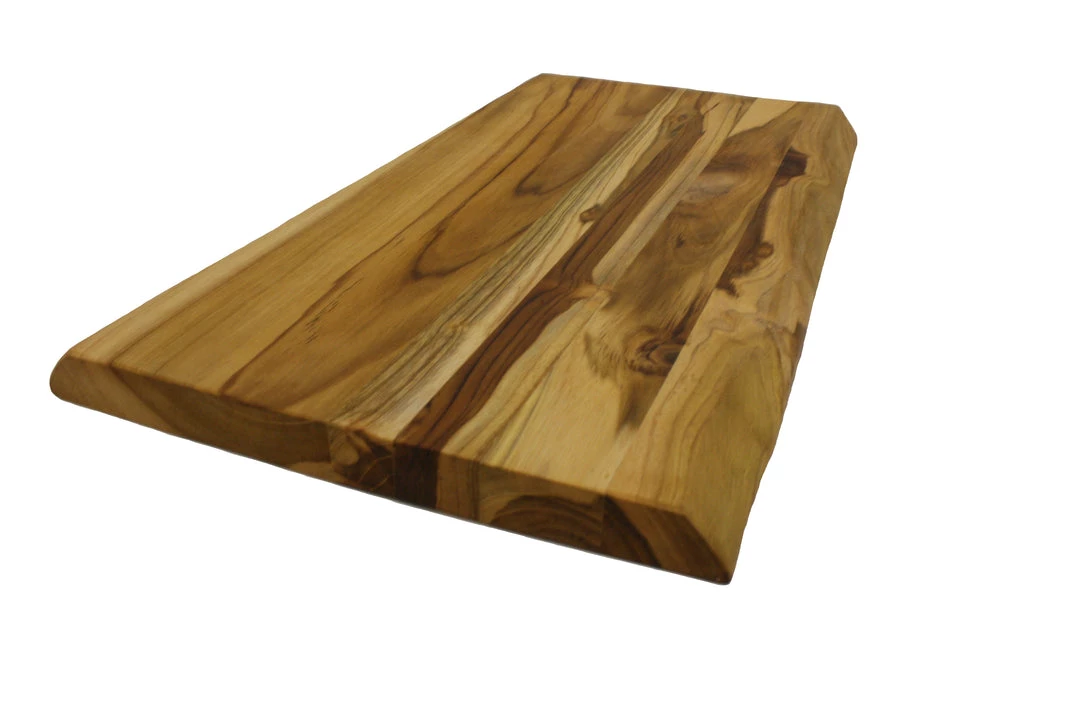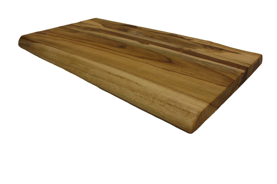 Dress up your kitchen or dining table with this durable, stylish and functional live-edge Teak wood cutting board or serving tray for kitchen. Both sides of the cutting board are suitable for chopping, slicing, or serving your favorite food. Your knife will require less sharpening because wooden cutting boards are less dulling than synthetic cutting boards. All of our wood cutting boards are protected with a food-safe natural oil finish.