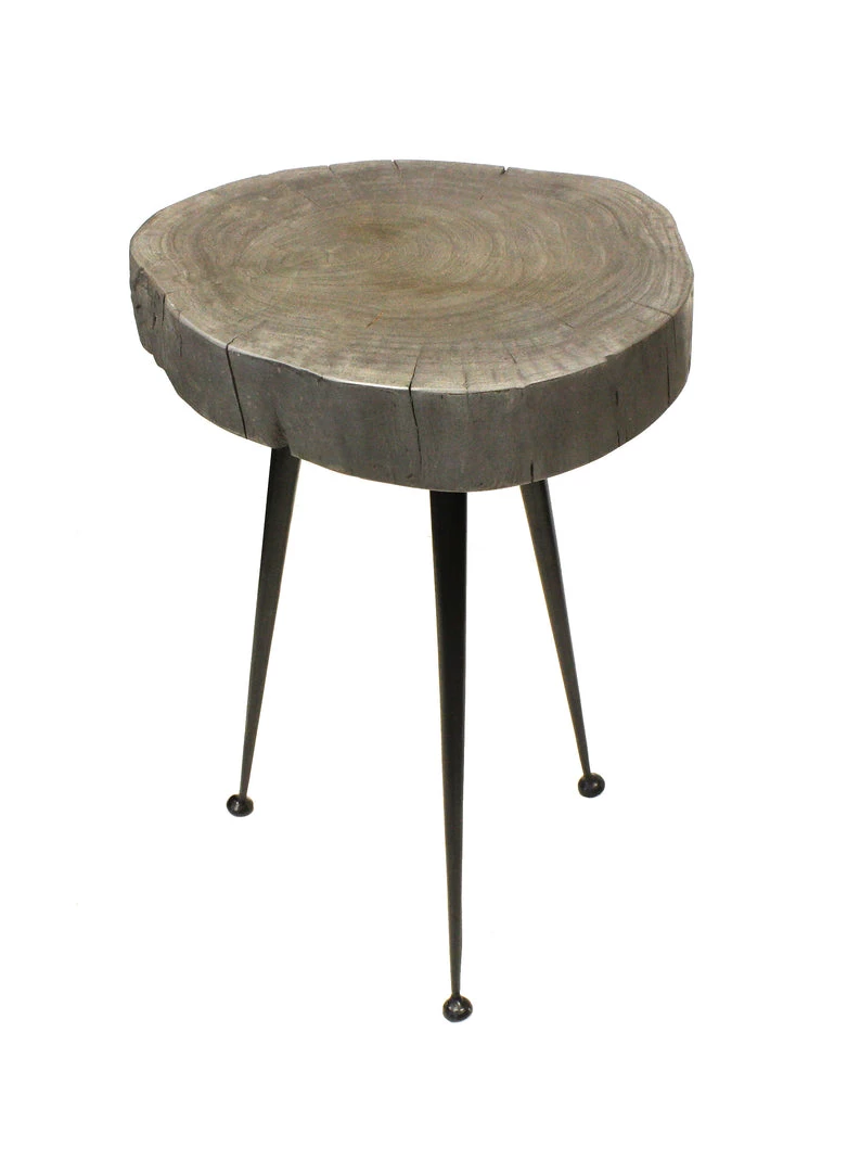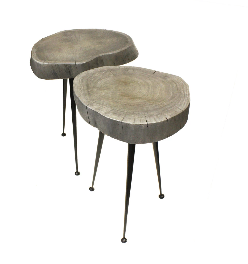 Made from beautiful Organic Slab of Acacia wood; 15-inch of surface side table or stool by Mountain Woods. Richest hues of the wood combined with the most sophisticated wood grains provide a unique piece that combines function and magnificent artisanship, plantation-grown acacia wood is known for its versatility, function, beauty, and sustainability.
