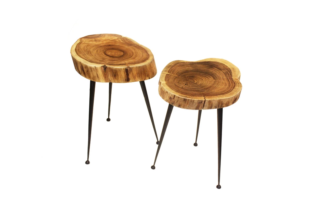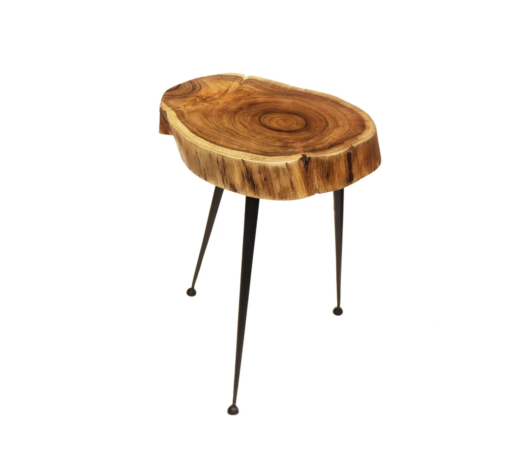 Made from beautiful Organic Slab of Acacia wood; 14-inch of surface side table or stool by Mountain Woods. Richest hues of the wood combined with the most sophisticated wood grains provide a unique piece that combines function and magnificent artisanship, plantation-grown acacia wood is known for its versatility, function, beauty, and sustainability.