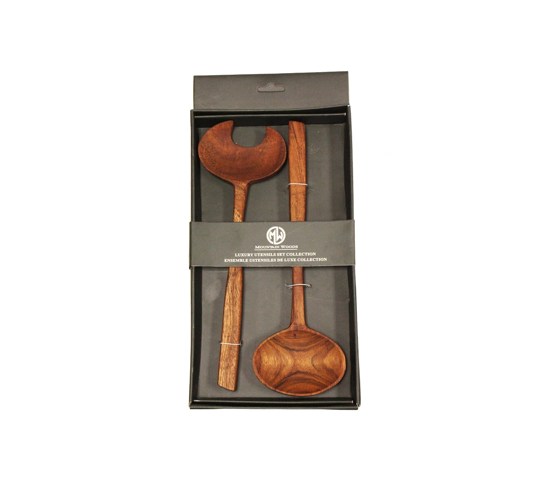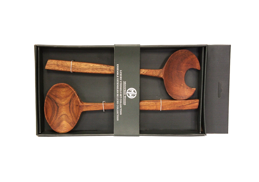 Hand Made; A striking addition to any table, our Organic Acacia wood salad server set features a classic shapes with solid wood that complements any décor. Pair with any of Mountain Woods salad bowls for the perfect entertaining set.
