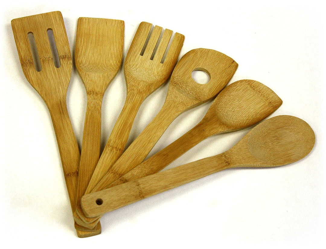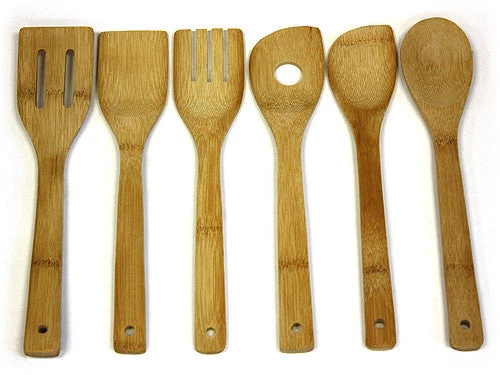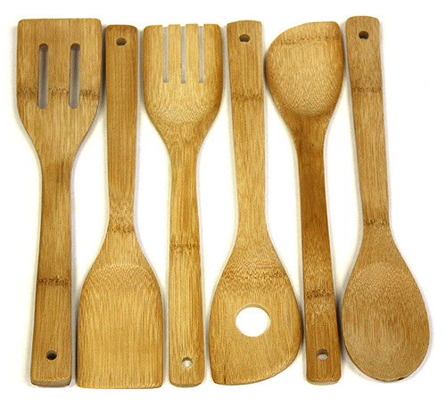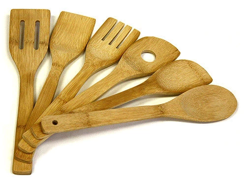 Cook and serve in style with this six piece set of bamboo serving utensils. Each utensil features a food-safe finish.
