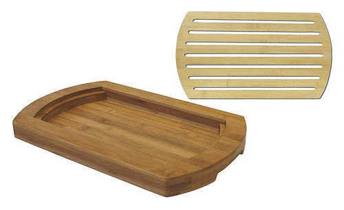 Keep those pesky crumbs off the table and protect surfaces when cutting bread with the Simply Bamboo Multi-Purpose Crumb Tray. A removable grate allows crumbs to fall into the tray base so they can easily be discarded or used for breading and stuffing.