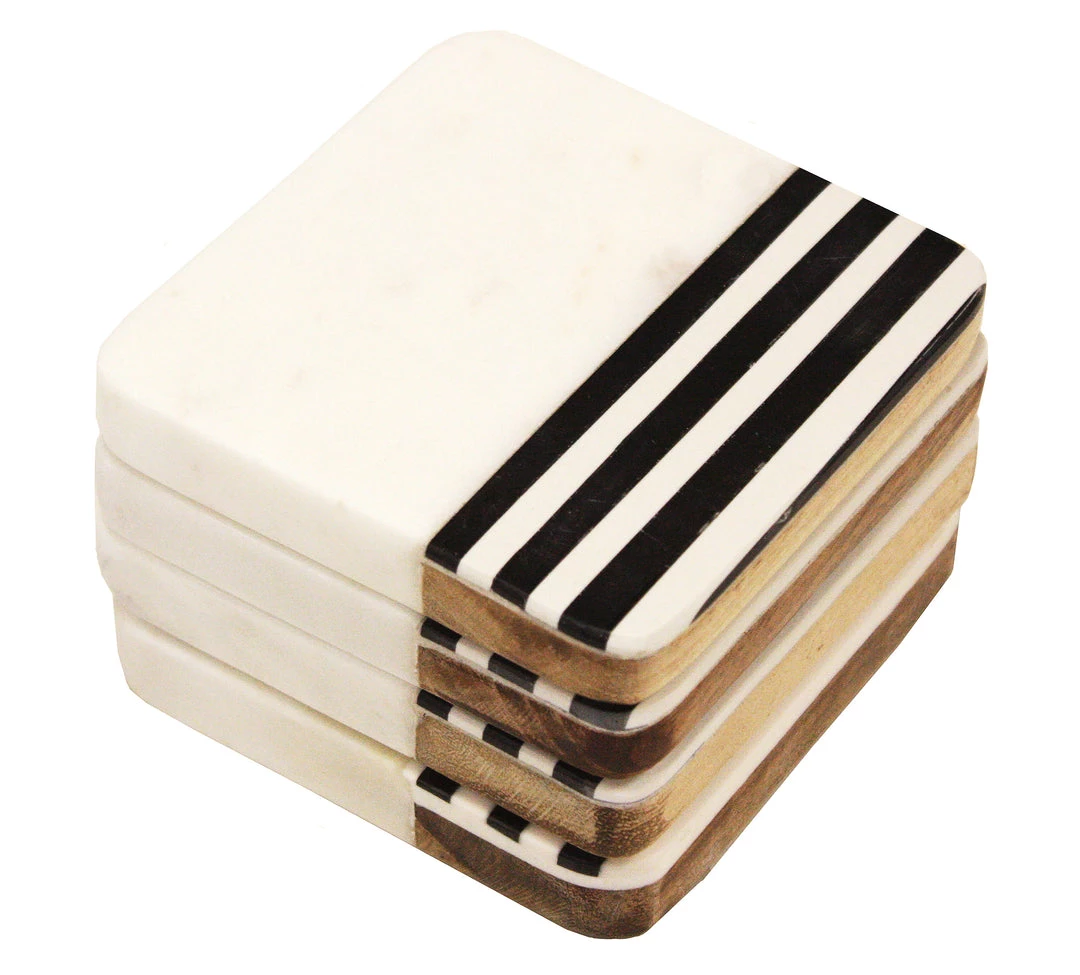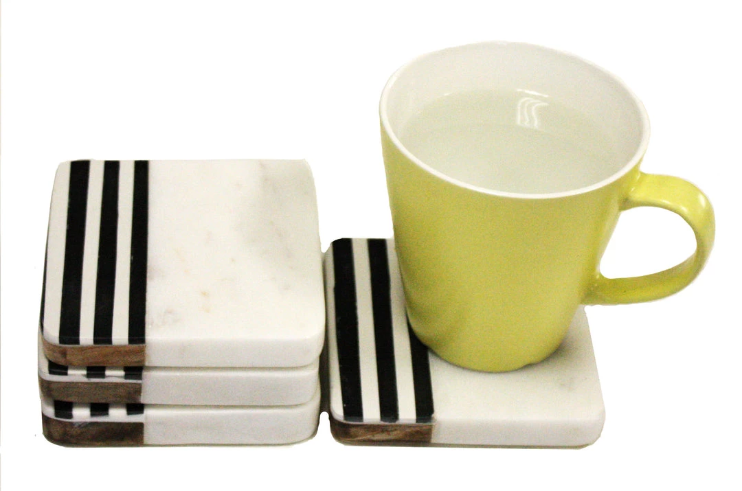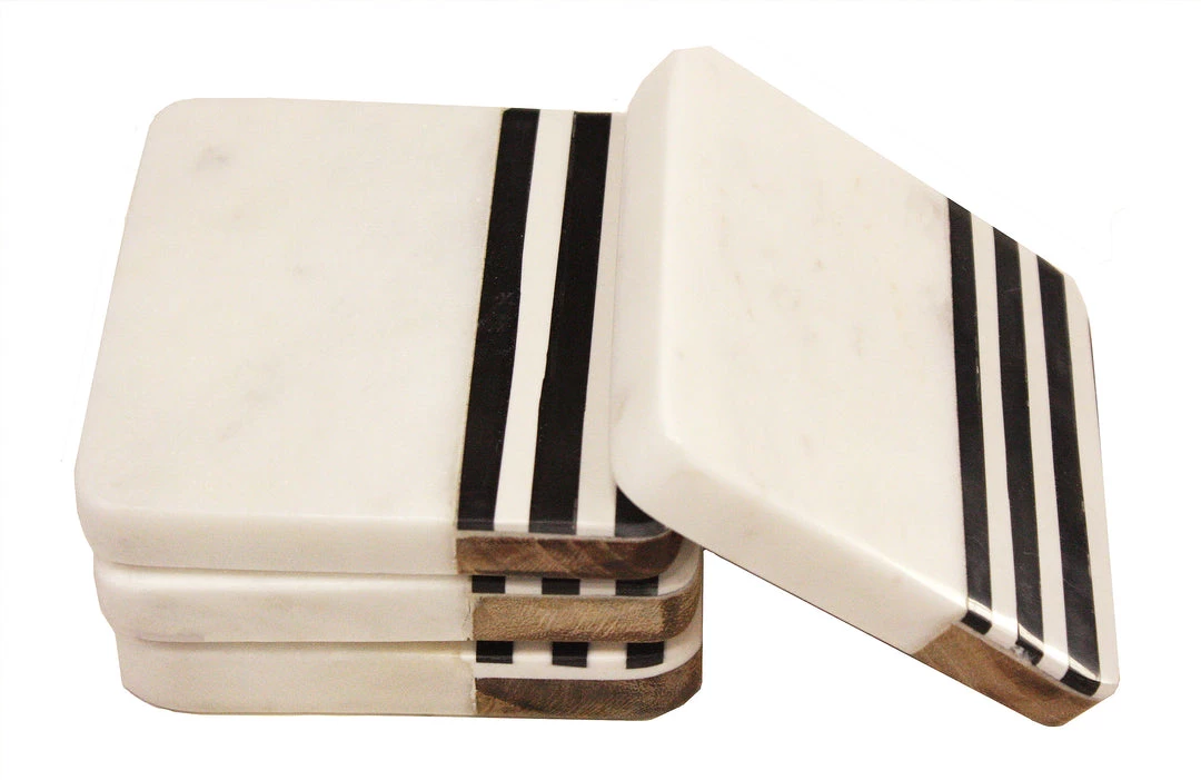 Zuccor Organic Marble & Acacia wood collection gives you this natural marble Made square Coasters. Premium Quality 4”X4” surface protects your furniture from Stains or hot drinks. This item is not suitable for Dishwasher. Hand wash and towel dry immediately.