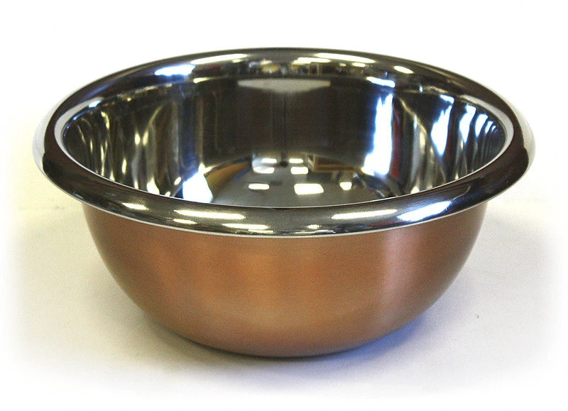 Whip up your favorite recipes in this beautiful mixing bowl featuring a copper-plated exterior and mirror polished interior. This finely crafted bowl is designed to add character and elegance to any kitchen. The bowl features a 6.3 quart /6000-milliliter capacity.