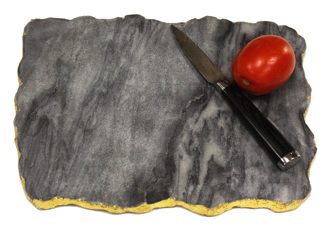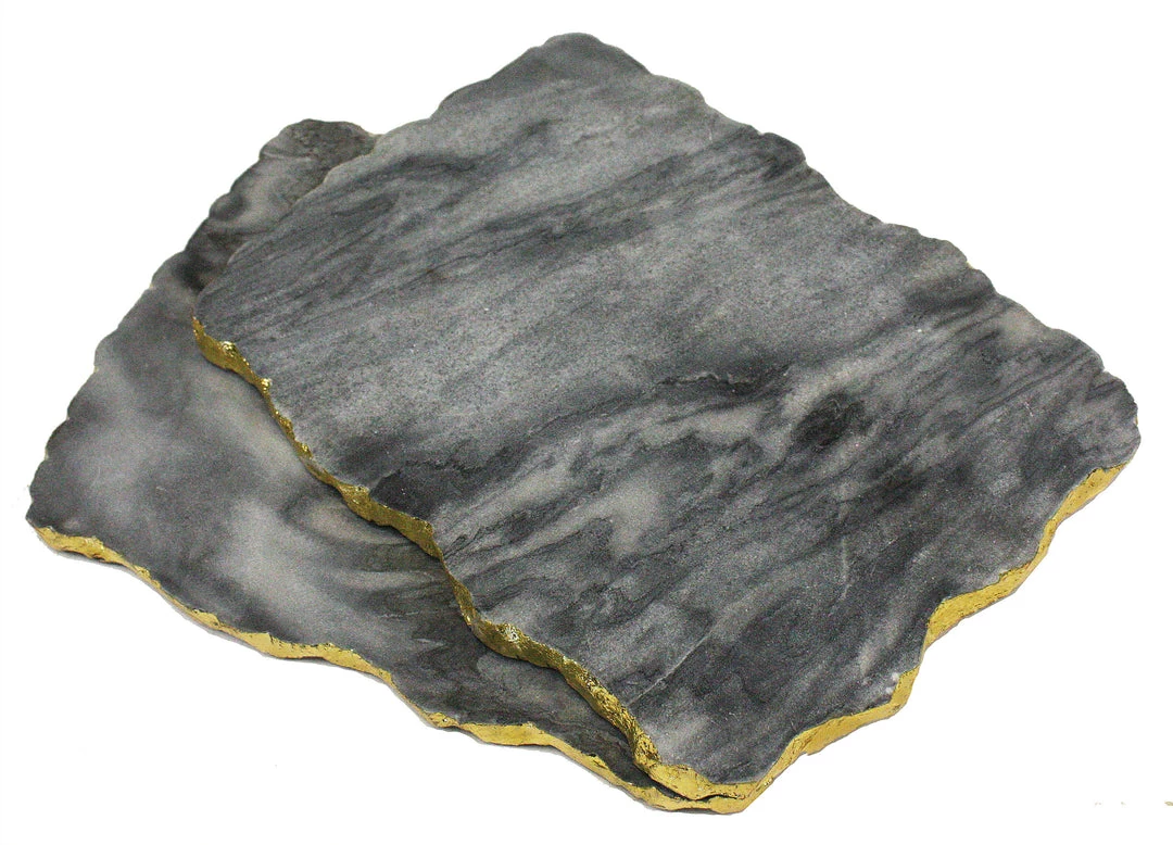 Zuccor Organic Marble collection gives you this natural Grey Marble server. Handcrafted from Premium Quality natural Marble. Serve your favorite Chesses, Chocolates, or Deserts with touch of class. Approximate size is 12’X8.5”