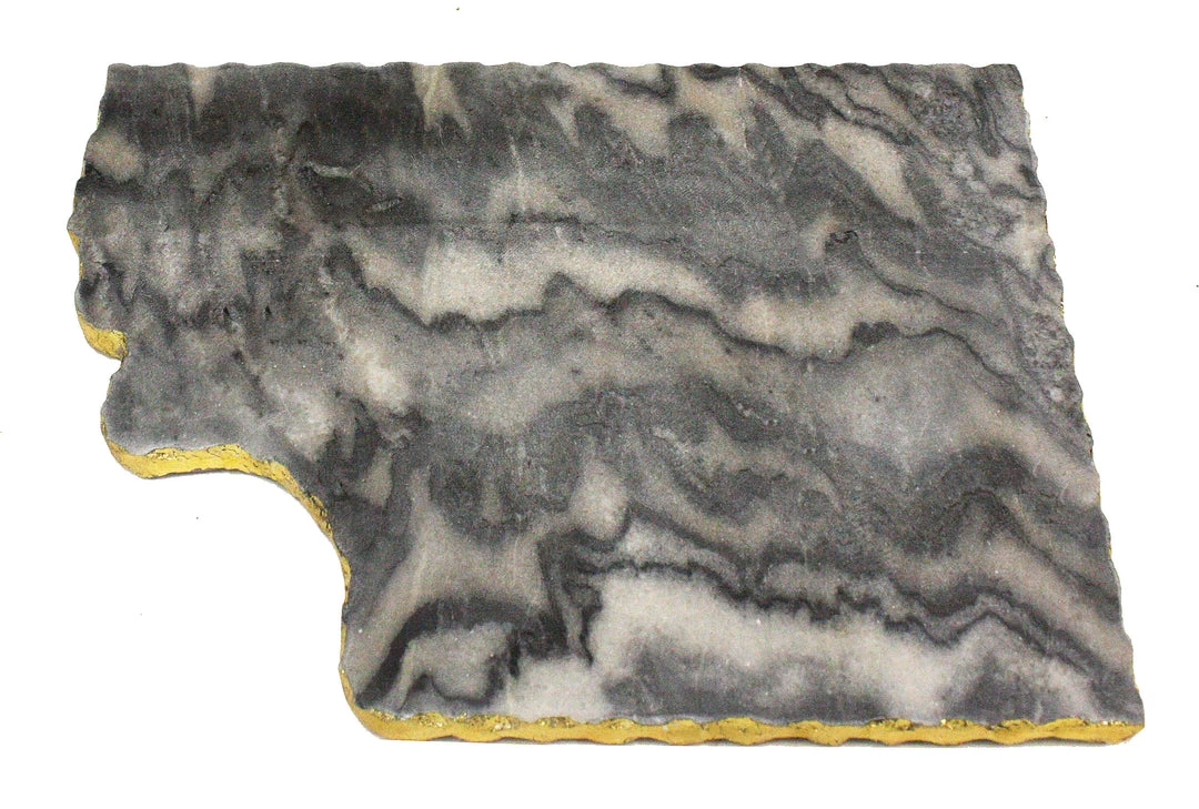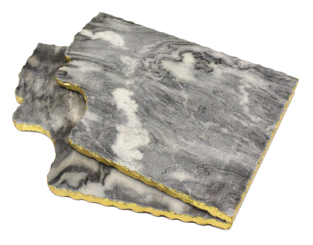 Zuccor On Sale Handmade Organic Marble Server Board With Gold Finished Chiseled Edge, 12”X8.5”